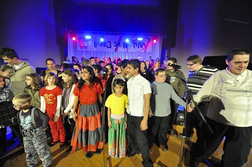 Už tradične si všetky „výnimočné“ deti zaspievali na záver s účinkujúcimi umelcami svoju hymnu: „Podaj ruku nášmu svetu, nechaj sa ním tíško viesť….“